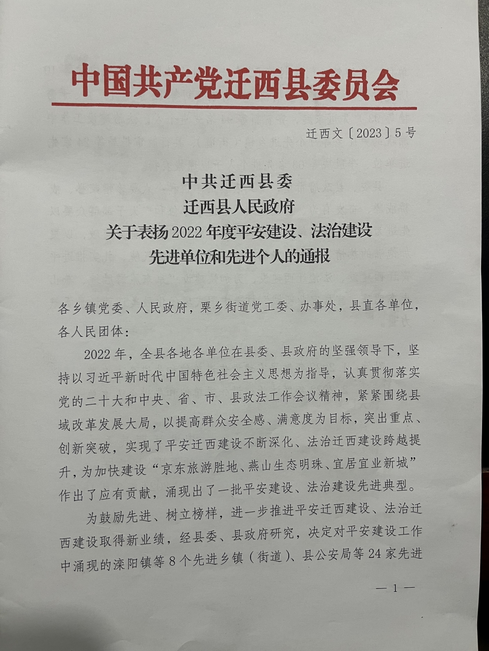 3月16日,迁西县委、迁西县人民政府发布了2022年度平安建设、法治建设先进单位和先进个人名单,二分公司迁西金水家园项目喜获“平安厂企”荣誉称号。