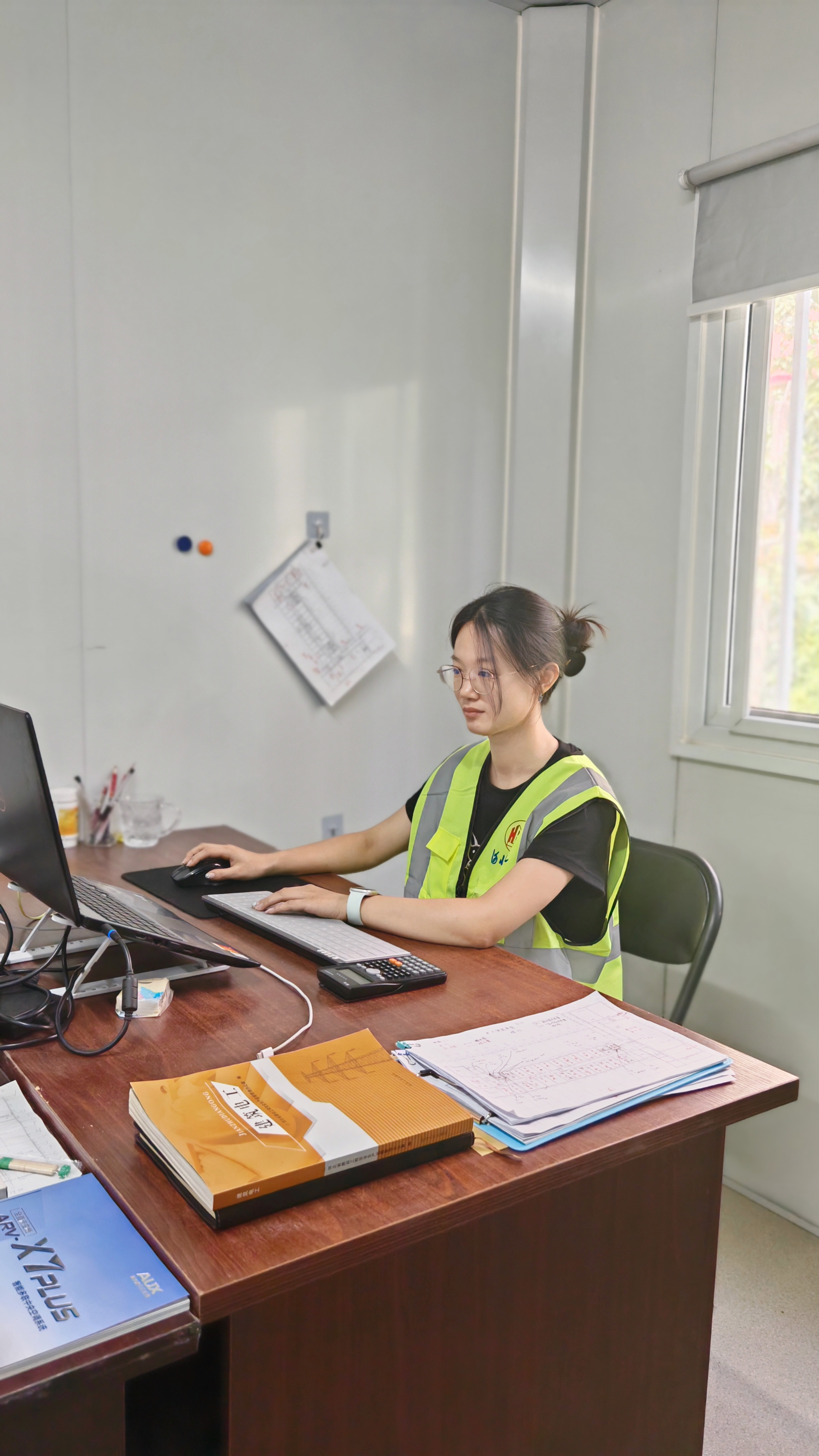 2022年7月,她被派往廊坊体训馆项目,初入项目的她感到知识储备不足,书本上学到的理论知识远远不能满足现场的工作实际。于是每天她都会拿着看不明白的图纸去现场对照,对照实际施工,一点点学习。对于不懂的业务知识总是认真地向各位前辈请教。在短短的两个月的时间里,她的基础业务工作能力得到了提升,也为日后的工作奠定了坚实的基础。